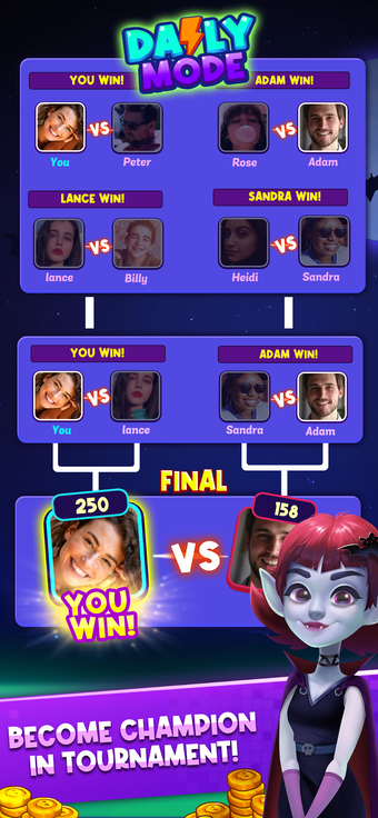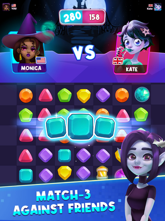 Twilight Hotel is een match-3 spel waarin je kunt samenwerken met vampiers, mummies, zombies en heksen om je tegenstanders te verslaan. Als je van competitieve gameplay houdt, zul je dit geweldig vinden omdat je tegen andere spelers over de hele wereld en met je vrienden zult strijden.